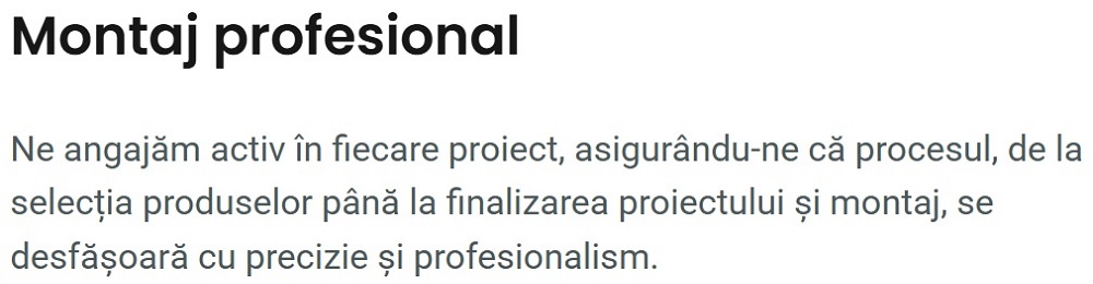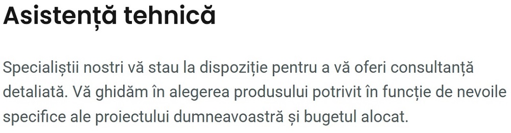 Echipa noastră se va ocupa și se va implica în fiecare proiect al clientului, începând de la asistența tehnică în alegerea soluției și produselor, în funcție de necesitățile și bugetul alocat, și până la finalizarea proiectului.